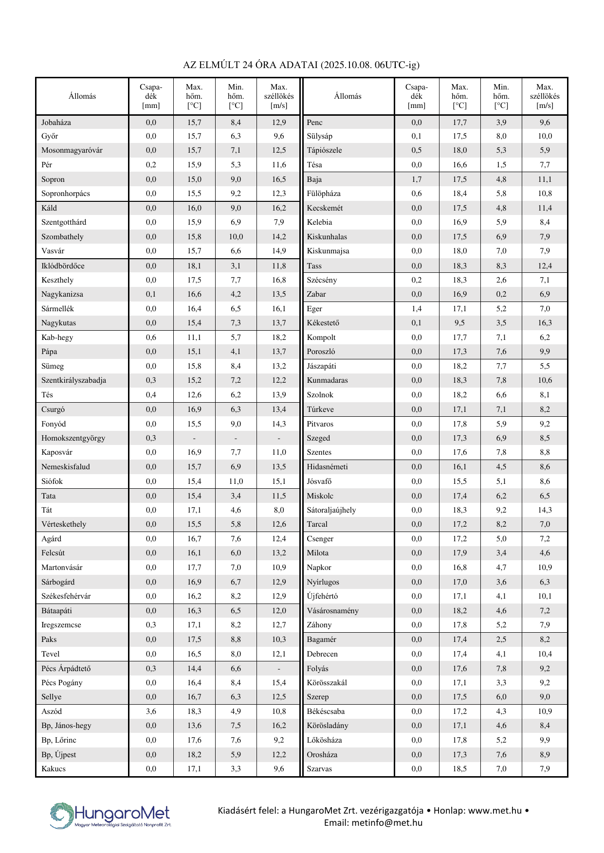 HungaroMet: 2025. október 8. 12:40 (10:40  UTC)  [pd4p]